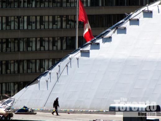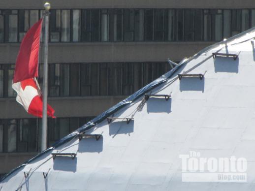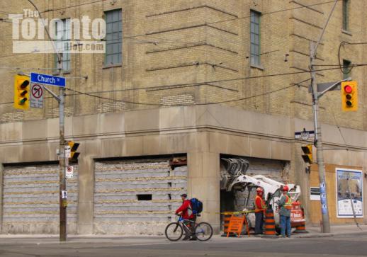 Below are more photos I took outside Maple Leaf Gardens this afternoon. Photos of earlier construction activity at the iconic hockey shrine can be viewed in my posts on November 3, June 14, April 14, March 29 and February 2.