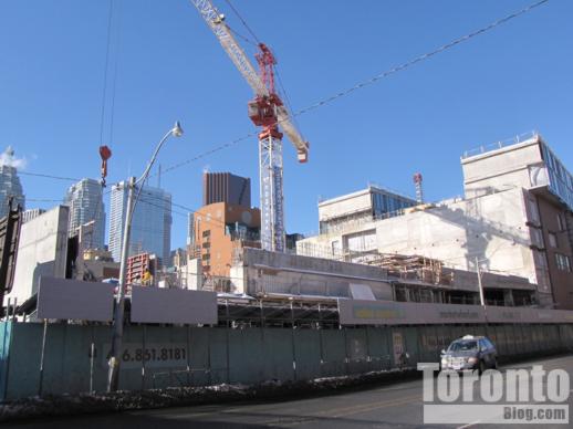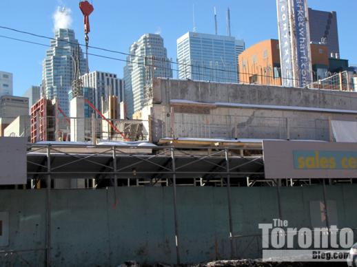 October 30 2011: Market Wharf condo tower construction viewed from the northeast corner of Jarvis Street and Lake Shore Boulevard.