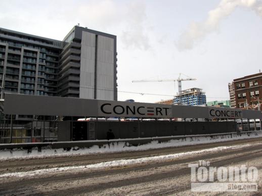I had been wondering how long it was going to take before a developer began building here, since Motion’s 570 Bay Street address is such a prime downtown location (the Eaton Centre and Ryerson University’s business school are right across the street; City Hall and the Financial District are a short walk to the south, and the hospital district is only two blocks north). It just didn’t make sense to maintain a parking lot on a piece of land worth millions of dollars.