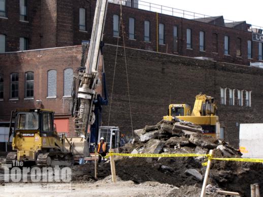 Now digging: The parking lot is long gone and the earth is starting to move at the southwest corner of Bay and Dundas, where Concert Properties Ltd. has begun building its latest rental apartment building, Motion on Bay Street.