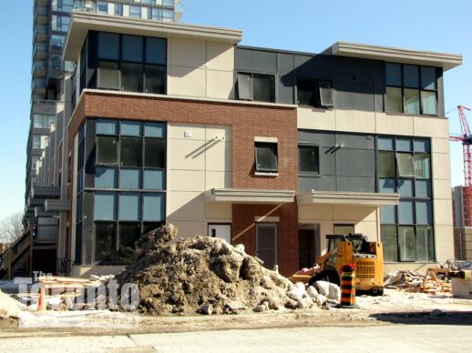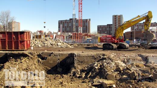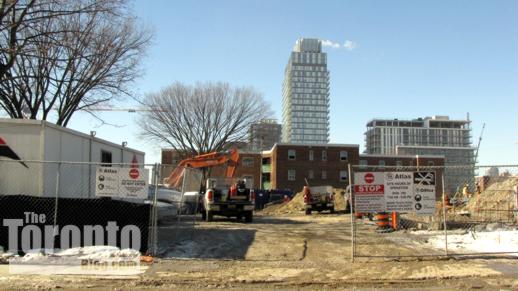 February 15 2011: Revitalization project activity next to the Paintbox Condos and Regent Park Arts and Cultural Centre construction site on Dundas Street East