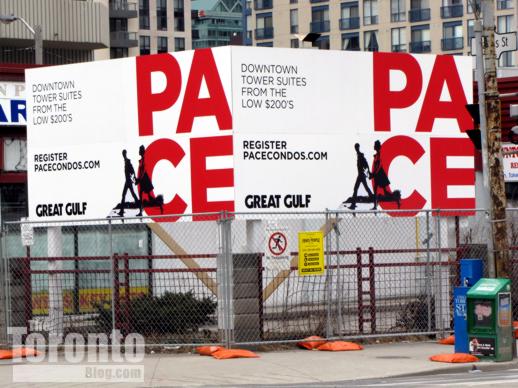 On-site promotional billboard for the Pace Condos tower