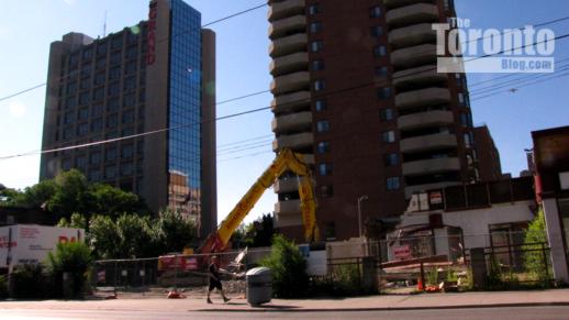 South view of the Pace Condos site from the opposite side of Dundas St. The brown brick building is 192 Jarvis, a 14-storey condominium built in 1985.