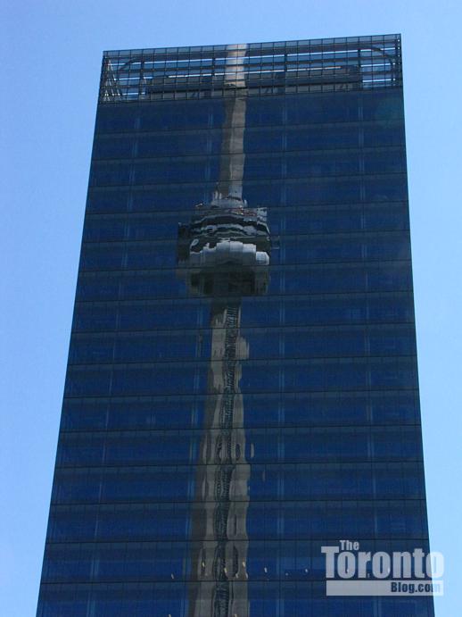 July 1 2011: Toronto’s iconic CN Tower reflects in windows on the west side of the new 26-storey PwC office building at 18 York Street.