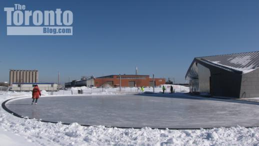 It was around noon, and I had been certain I would arrive to find the rink packed with workers from the nearby Corus Quay office building getting in a quick skate during their lunch break. But the two of us were outnumbered by no fewer than seven civic employees who were busy shovelling snow and digging up the ground behind the shiny silver washroom and snack bar pavilion next to the ice oval.