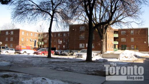 One of the Regent Park apartment buildings, dating to the 1950s, which will eventually be demolished and replaced with new housing