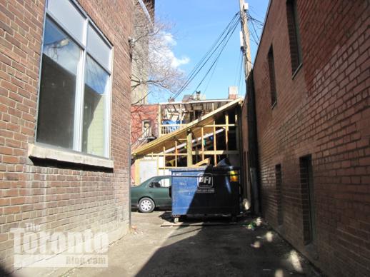April 1 2011: A laneway between 15 St Mary Street and 67 St Nicholas Street leads to a parking and garbage area behind the buildings.