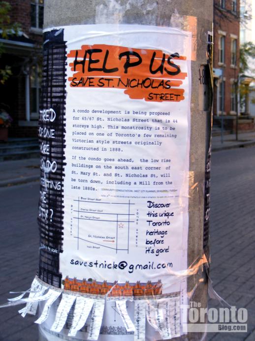 October 30 2008: A Save St Nick protest sign on a St Nicholas St. telephone pole
