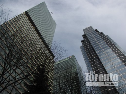 Ritz-Carlton Toronto neighbours RBC Centre (middle) and Simcoe Place (right)