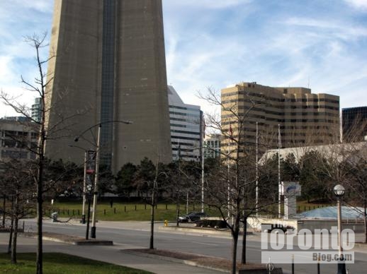 View towards the Ripley Aquarium site from the base of the CN Tower