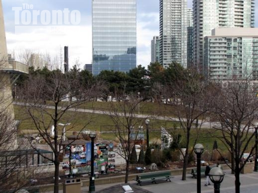 Aquarium site viewed from walkway along the east side of the Rogers Centre