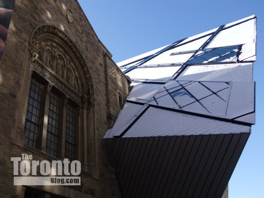This particular block of Bloor has been a busy hub of building activity for a decade. But the growth, and some of the architectural design, has drawn mixed and sometimes highly-charged negative reaction from the public. Change started on the south side of the street when the Royal Ontario Museum (ROM) launched its “Renaissance ROM renovation and expansion project” and hired internationally renowned architect Daniel Libeskind to design the Crystal — a building addition featuring spectacular new gallery space and a dramatic Bloor Street entrance. Evocative of giant ice crystals bursting through the brown brick façade of the original 1914 neo-Romanesque museum’s north wall, The Crystal celebrated its official opening during a massive street party on June 2 2007. Controversial from the start, the Crystal has become one of the city’s top “either love it or hate it” buildings, its design derided by many Toronto residents and visitors while lauded by others, including Conde Nast Traveler magazine, which named it one of “The new seven wonders of the world” in April 2008.
