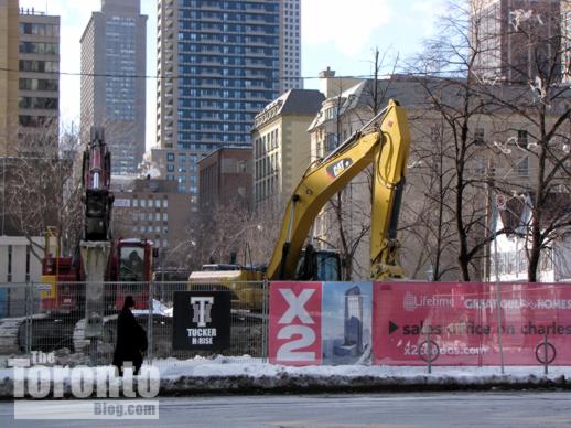 March 29 2011: Excavation machines inside the pit at 300 Front West