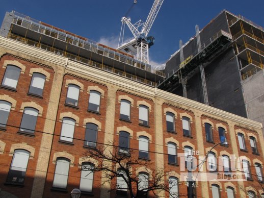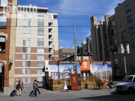 July 17 2011: Victory rises behind the brick building at 500 King Street West