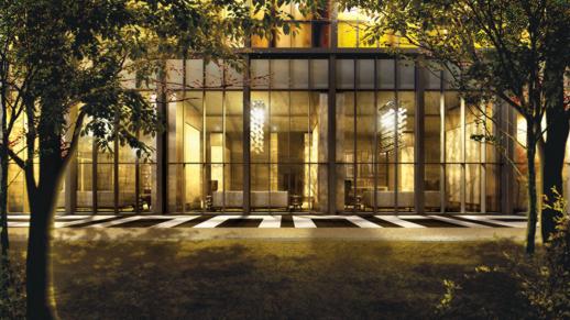 Website illustration of the lobby exterior, viewed from the condo park