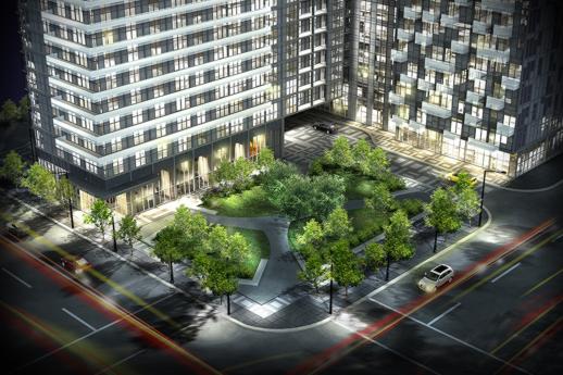 From the condo website, an illustration of the landscaped SE corner park