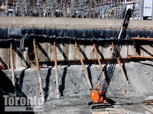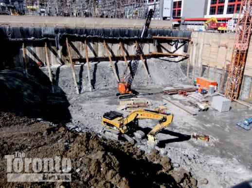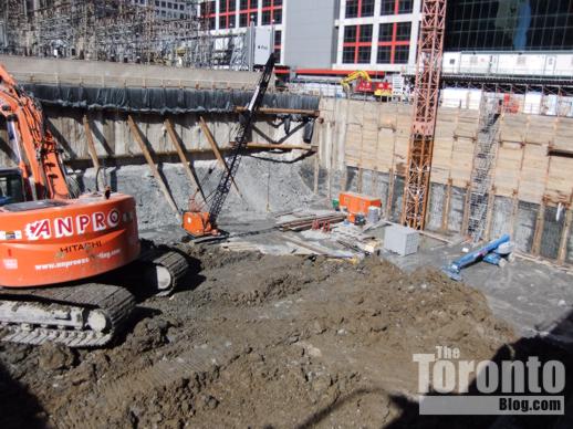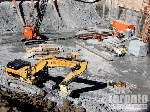 March 29 2011: Excavation machines inside the pit at 300 Front West