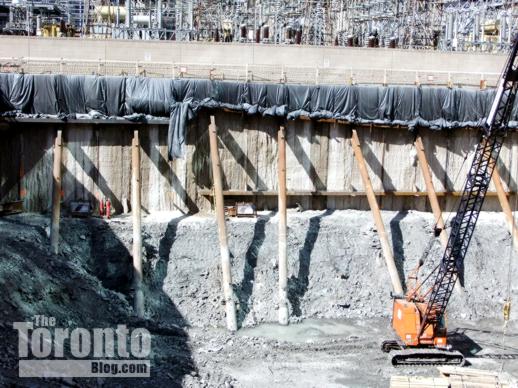 March 29 2011: Excavation machines and equipment inside the deep pit at the Three Hundred Front Street West condo tower construction site