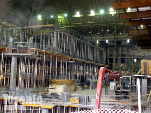 November 1 2011: The Ryerson property is close to two other major construction sites. Cranes for the new SickKids Research and Learning Tower on Bay Street are visible at left rear, while cranes for the 75-storey Aura condominium tower at Yonge & Gerrard Streets are visible at right.