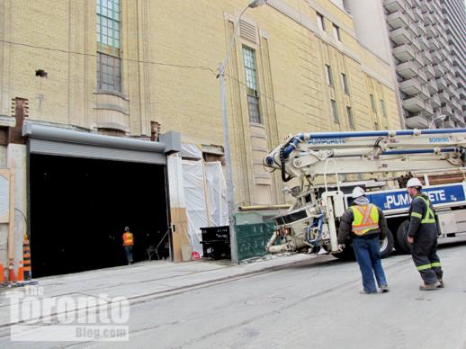 November 1 2011: Ryerson Student Learning Centre site viewed from Gould Street at O’Keefe Lane, looking northwest across Yonge Street