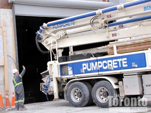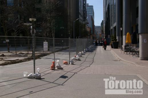 March 7 2011: Looking east along Elm Street toward the Student Learning Centre site. The new 9-storey building will dominate this sightline, rising directly in front of the concrete Ryerson University Library building. Like the library, the centre will be 51 meters tall (including mechanical equipment).