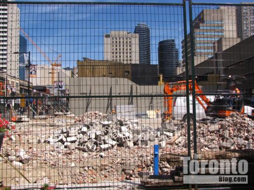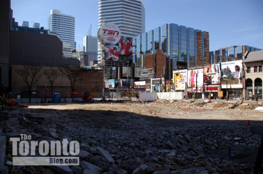 November 1 2011: Looking north across the Ryerson University Student Learning Centre site from the southwest corner of Yonge and Gould Streets