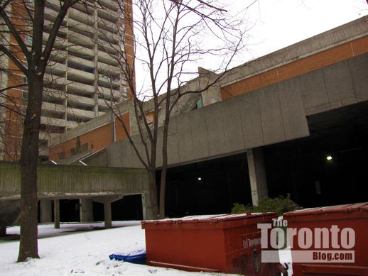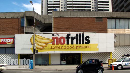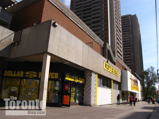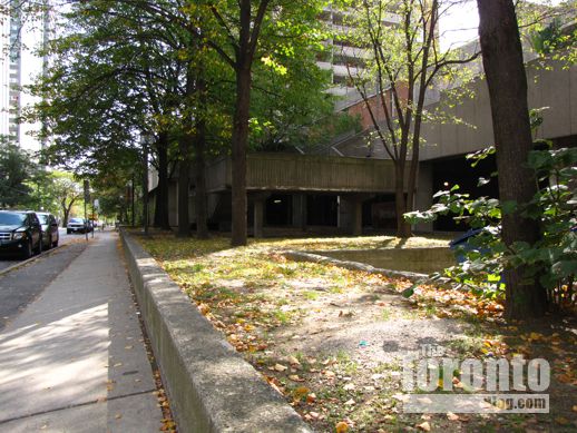 Looking northwest from Bleecker Street to the site for which a 50-storey condo tower had been proposed. The Filipono food store building visible at right is not part of the redevelopment plan.