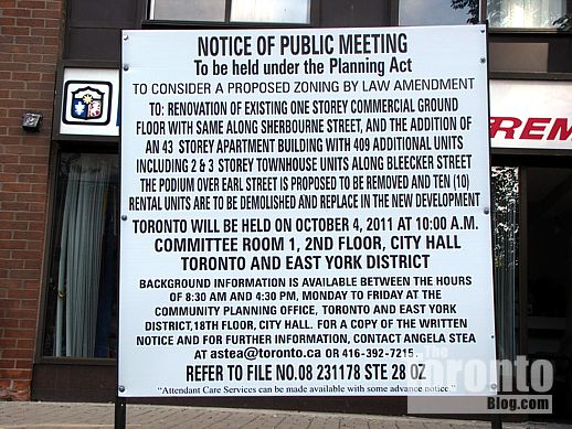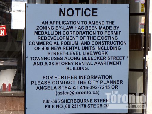 The proposed tower site is less than a minute’s walking distance from Bloor Street and the Sherbourne subway station