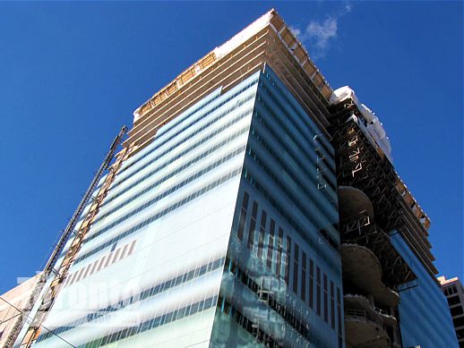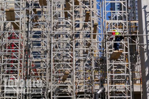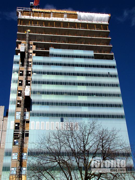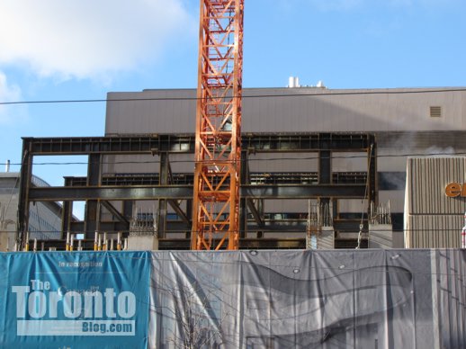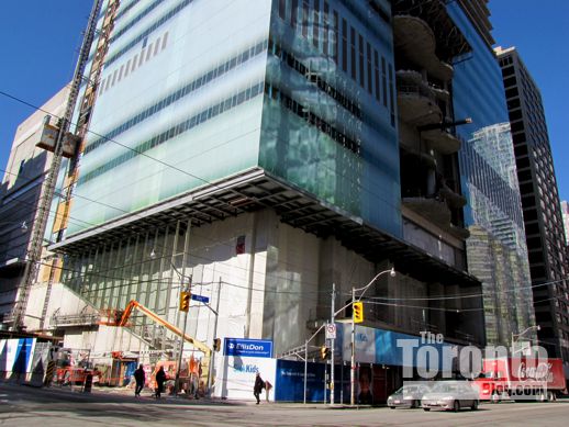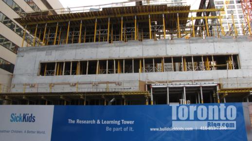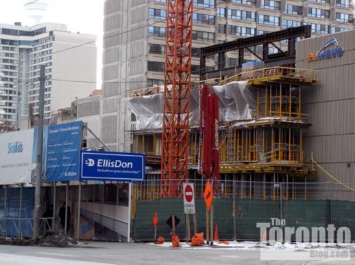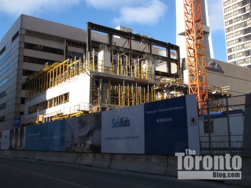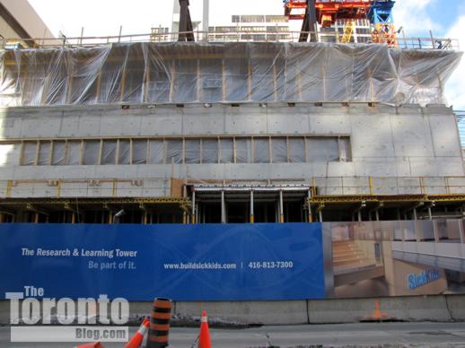 September 11 2013: A crew continues work on the SickKids logo being installed near the upper right corner of the building’s south face