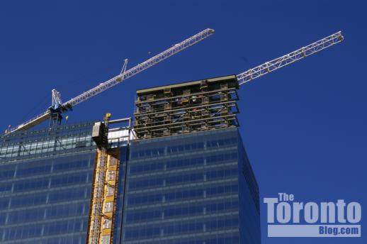 February 18 2011: Simcoe Street view of the cranes atop the PwC office tower