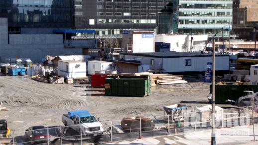 January 3 2011: Trailers and dumpsters on the hotel and office tower building site