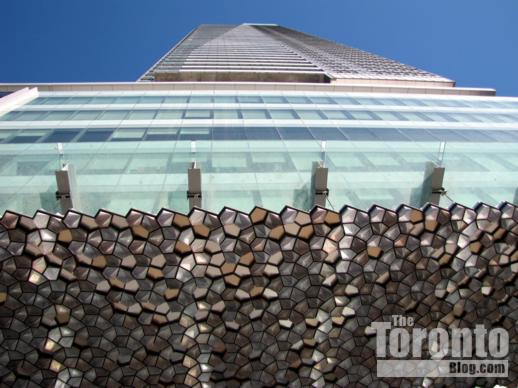 Above the awning: Another view of the Maple Leaf Square south condo tower, this time from beneath the unique artistic awning that extends above the sidewalk along the east side of York Street. More pics of the entire complex — from both indoors and out — can be viewed in the Maple Leaf Square album on the Photo Sets page of the blog.