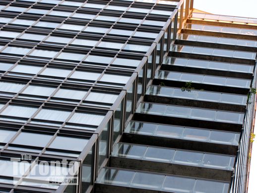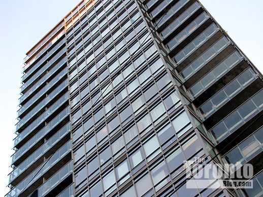 August 19 2011: The west wall of 17 Dundonald Street catches some evening sun and reflects the Continental Tower apartment building next door