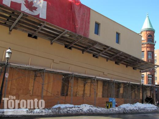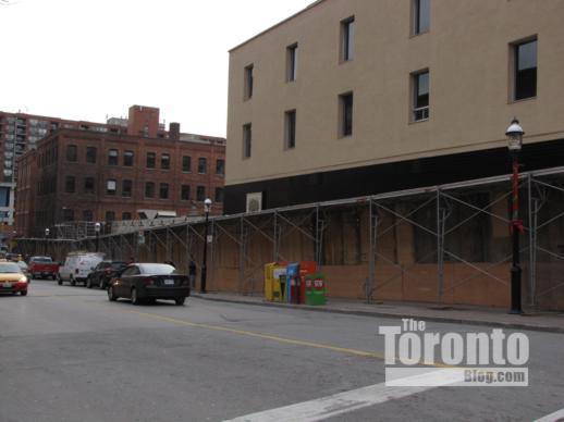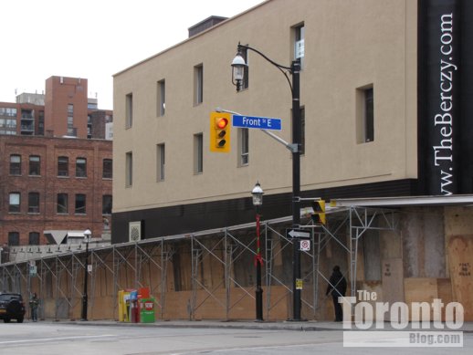 The Berczy condo construction site viewed from The Esplanade on March 7 2011. Most of the Flatiron Building is now visible from the bottom of Church Street.