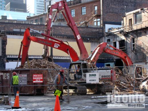 Demolition at the south end of The Berczy site on February 3 2011