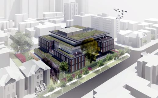 Designed by Toronto’s KPMB Architects, the ETFO headquarters will stand four storeys tall with one level of underground parking for 50 vehicles. The building is being designed to achieve LEED (Leadership in Energy & Environmental Design) certification. It will replace a pair of 2-storey brick buildings that have been sitting vacant, and in a visible state of disrepair, since the CAS relocated to its new premises in 2006. Demolition of those structures started two weeks ago and should conclude shortly. Kael Opie, the ETFO project architect at KPMB , said construction of the new headquarters is expected to begin within the next month. Completion is anticipated for May 2013.