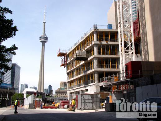 June 20 2011: Only the top floors of the BCE Place towers remain visible from The Esplanade — and will soon be blocked as L Tower climbs higher