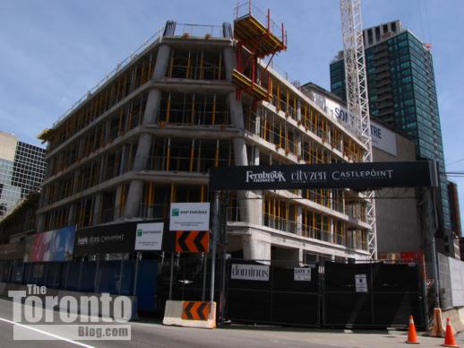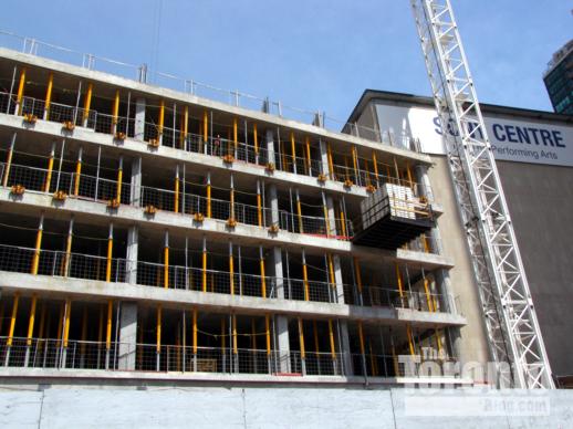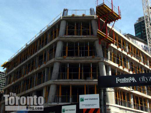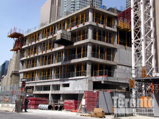 June 20 2011: L Tower construction dominates the west end of The Esplanade as the condo tower rises past the 5th floor on its way to 57 storeys