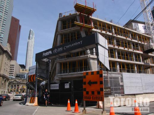 March 7 2011: Construction inches above the hoarding along Yonge Street …