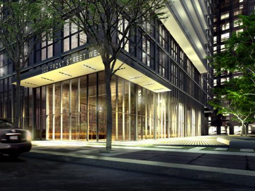 Overall, I think Three Hundred Front Street West will significantly enhance the streetscape in one of the city’s most popular tourist areas, particularly since it will block many sightlines of the Windsor hydroelectric station on Wellington Street. And with plans in the works for John Street to get a major makeover in the next several years, Three Hundred Front Street West’s main entrance park will become a classy southern gateway to the Entertainment District’s main north-south street. The only downside to the development, that I can see, is the block full of ugly power transformers on its north flank. But since Wallman’s design means all of the loft suites face south, their residents will still enjoy good views and won’t get stuck overlooking electrical equipment.