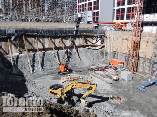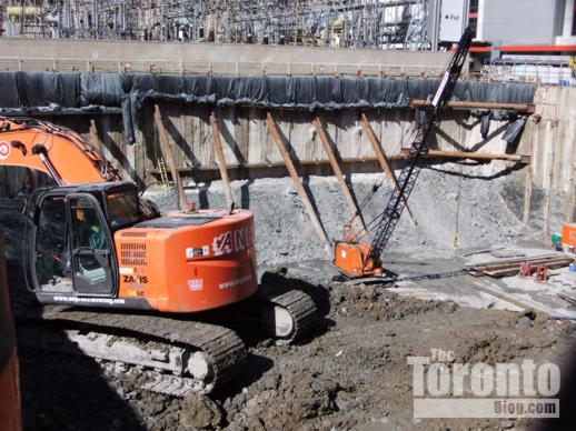 March 29 2011: Excavation machines inside the pit at 300 Front West