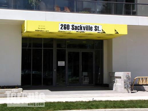 Street-level view of One Park West condo from Sackville Street