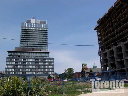 … which is right next door (to the west) of the Paintbox Condominium highrise currently under construction (right) …