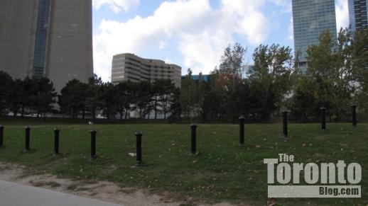 Construction actually commenced several weeks ago when crews began clearing the site, a large grass- and tree-covered knoll situated between the CN Tower to the west and the Metro Toronto Convention Centre‘s south building to the east.