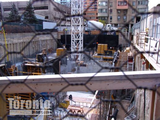 November 17 2011: RCMI condo foundation progress viewed from the northeast corner of the construction site, looking west toward Simcoe Street