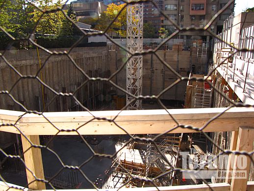 November 17 2011: Looking across the Residences at RCMI condo construction site from a small window in hoarding along University Avenue