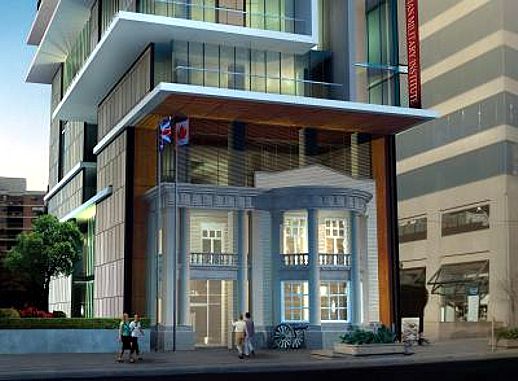 From the Royal Canadian Military Institute website, this illustration shows how the facade of the former RCMI headquarters will be rebuilt into the condo tower base