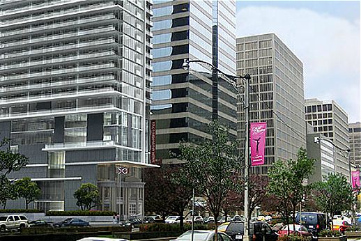 August 12 2011: A view of the RCMI condo site from the east side of University Avenue. The tower will soar above the office buildings that bookend the north and south sides of the construction site.