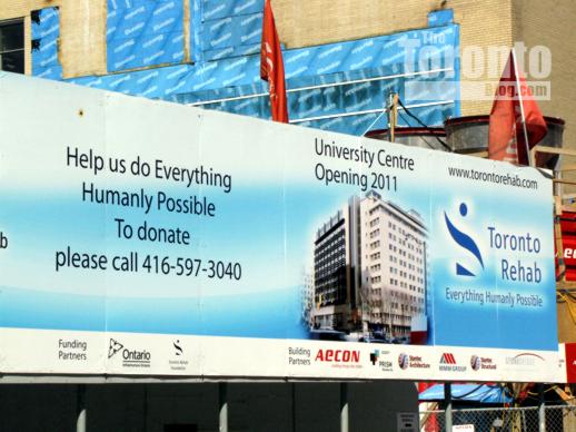 Project sign outside Toronto Rehab building site April 17 2009