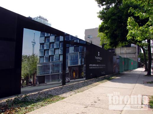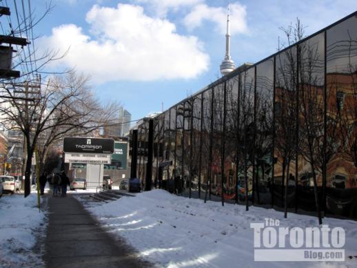 March 11 2010: The Thompson Residences site on King east of Bathurst Street. The Thompson Hotel complex at 550 Wellington Street stands at rear left.